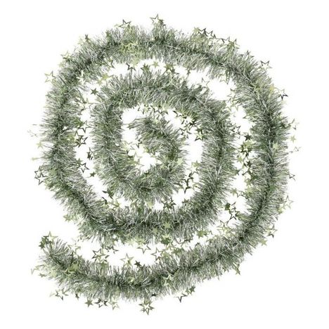 Informations Techniques : Dimensions : L. 300 x l. 12 x H. 4 cm Matière : PVC Spécificités : Pratique & Festif Guirlande de Noël Avec étoiles embossées 6 plis Brins fins Nombre de microns : 50/68 Poids : 0,08 kg Couleur : Vert Argenté