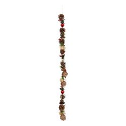 Informations Techniques : Dimensions : L. 6 x l. 6 x H. 100 cm Matière : Bois (Pomme de pin), Plantes Séchées & PVC Spécificités : Pratique & Chic Guirlande Déco Avec pommes de pin, boules & ornements Poids : 0,28 kg Couleur : Rouge