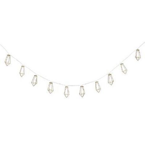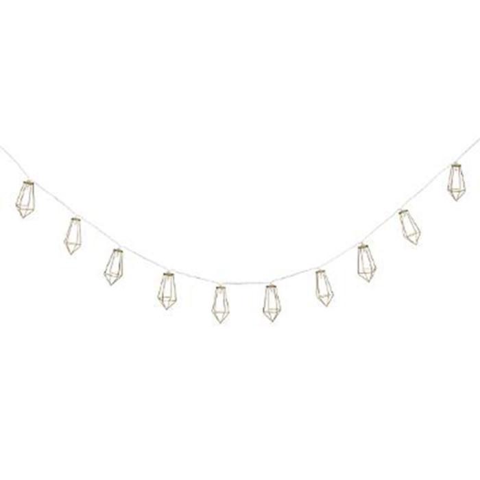 Informations Techniques : Dimensions : L. 120 x l. 4 x H. 8 cm Matière : Fer Spécificités : Pratique & Design Guirlande lumineuse Contient 10 led Fonctionne à piles (2 x AA / LR06 non incluses) Puissance maximum : 3V Facile d'utilisation & d'entretien Poids : 0,1185 kg Couleur : Or