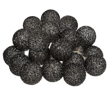 Votre pièce manque de chaleur ? Cette guirlande lumineuse sera votre atout charme.FICHE TECHNIQUE- Guirlande LED.- Couleur des boules : Noir argenté.- Détails : 20 boules.- Matière : Coton, Cuivre et PVC.- Alimentation sur secteur.- Couleur LED : Blanc.- Couleur non changeante.CARACTERISTIQUES TECHN