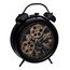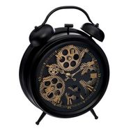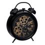 Informations Techniques : Dimensions : L. 25,8 x l. 8 x H. 33,5 cm Matières : Fer & Verre Spécificités : Pendule à poser Design façon réveil Mécanisme YOUNGTOWN 12888 apparent Fonctionne avec 3 piles AA/LR6 non fournies Facile d'entretien et d'utilisation Poids : 1,31 kg Couleur : Noir
