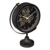 Informations Techniques : Dimensions : L. 28 x l. 13 x H. 40 cm Aiguilles : L. 12 x l. 1 x H. 0,1 cm Matières : Fer, Polypropylène & Verre Spécificités : Pratique & Utile Horloge à Poser Forme Ronde Style Vintage & Rétro Marque du Mouvement : Jibang 8848 Mouvement Mécanique & Silencieux Fonctionne à