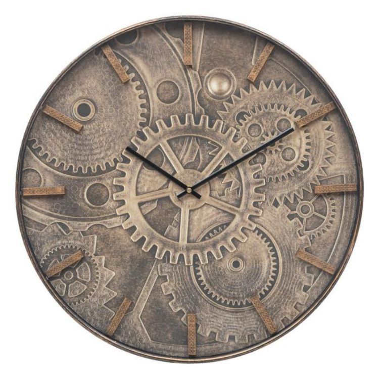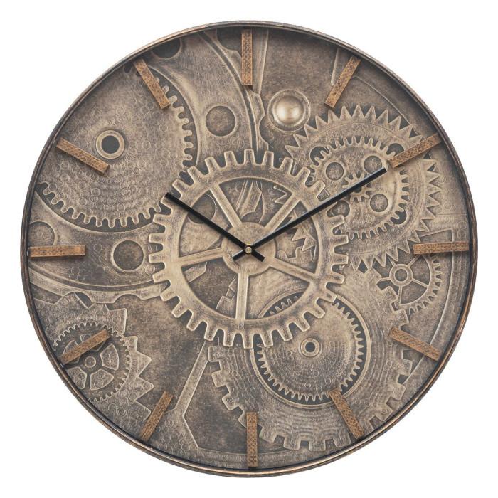 Informations Techniques : Dimensions : D. 50 x H. 4,5 cm Matières : Verre & Polypropylène Spécificités : Tendance & Pratique Horloge murale déco Cadran imprimé mécanismes & chiffres Forme ronde Fonctionne avec 1 pile (non incluse) Type de pile : LR6 - AA - 1,5V Poids : 1,75 kg Couleur : Marron
