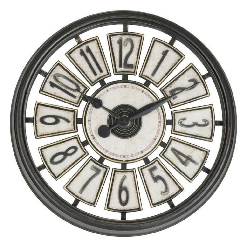Informations Techniques : Dimensions : D. 39,2 x H. 5,2 cm Matières : Polystyrène (HIPS) & Verre Spécificités : Vintage & Déco Horloge murale ronde Chiffres analogiques Mécanisme silencieux Mouvement saccadé Pile non incluse Type de pile : 1 x LR6 - AA - 1,5 V Poids : 0,96 kg Couleur : Marron