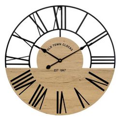 Horloge Murale Déco Clovis 70cm Noir & Naturel
