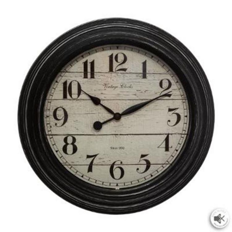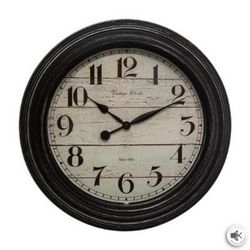 Informations Techniques : Dimensions : D. 29,4 cm Épaisseur : 4,8 cm Matières : Polypropylène & Verre Spécificités : Tendance & Pratique Horloge Murale Déco Forme Ronde Style Vintage Fonctionne à Piles (1 x AA / LR6 non incluses) Facile d'Entretien & d'Utilisation Poids : 0,5 kg Couleur : Noir