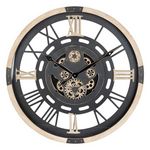 Informations Techniques : Dimensions : D. 80 x l. 8 cm Matières : MDF & Verre Spécificités : Utile & Industrielle Horloge murale ronde Avec chiffres romains Design engrenages mobiles Mouvement saccadé Mécanisme silencieux Piles non incluses Type de piles : 3 x LR6 - AA - 1,5 V Poids : 8 kg Couleur :