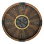 Informations Techniques : Dimensions : L. 63,5 x l. 8 x H. 63,5 cm Matières : Verre & MDF Spécificités : Vintage & Utile Horloge murale ronde Chiffres romains Engrenages mobiles Mécanisme silencieux Mouvement saccadé Piles non incluses Type de piles : 3 x LR6 - AA - 1,5V Poids : 5,6 kg Couleur : Mar