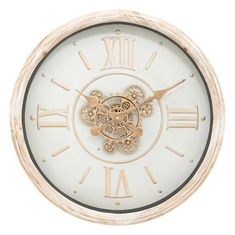 Informations Techniques : Dimensions : L. 49,5 x l. 8,5 x H. 49,5 cm Matières : Verre & MDF Spécificités : Vintage & Utile Horloge murale ronde Chiffres romains Engrenages mobiles Mécanisme silencieux Mouvement saccadé Piles non incluses Type de piles : 3 x LR6 - AA - 1,5V Poids : 3,42 kg Couleur :