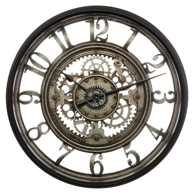 Horloge silencieuse Mécanique D51Look vintage industriel affirmé pour cette horloge ronde Mécanique. En plus elle ne fait aucun tic-tac grâce à son système à mécanisme silencieux. Avec son design au mécanisme apparent très steampunk, cette horloge ira très bien dans un intérieur industriel ou rétro