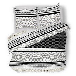 Transformez l'ambiance de votre chambre avec cette superbe housse de couette 3 pièces Etniss pour lit 2 personnes fabriquée entièrement en coton percale de qualité supérieure à tissage très serré 80 fils/cm². Imprimée d'un motif graphique très actuel, elle apportera une ambiance chaleureuse à votre