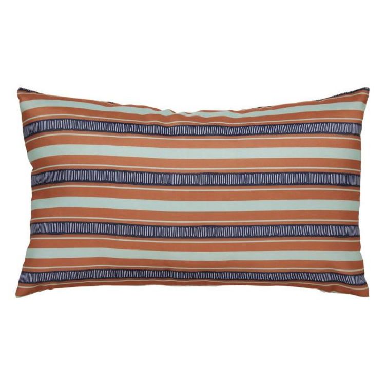 Informations Techniques : Dimensions : L. 50 x l. 30 x H. 0,2 cm Matière : Polyester (22 fils/cm2) Spécificités : Déco & Colorée Housse de coussin extérieur Imprimé à rayures Tissu déperlant Déhoussable Lavable en machine à 30° Label Oeko-Tex Poids : 0,05 kg Couleur : Cannelle