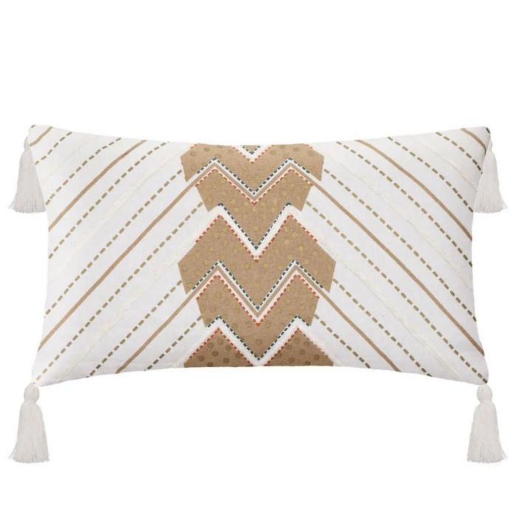 Informations Techniques : Dimensions : L. 50 x l. 1 x H. 30 cm Matières : Coton & Polyester Spécificités : Pratique & Tendance Housse de Coussin Forme Rectanglaire Imprimé Graphique Avec Pompons Douce & Agréable au Toucher Lavage en Machine à 30° (processus normal) Blanchiment & Séchage en Tambour i