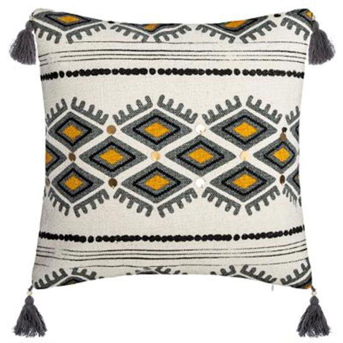 Housse de Coussin Imprimé Aztèque 40x40cm Beige