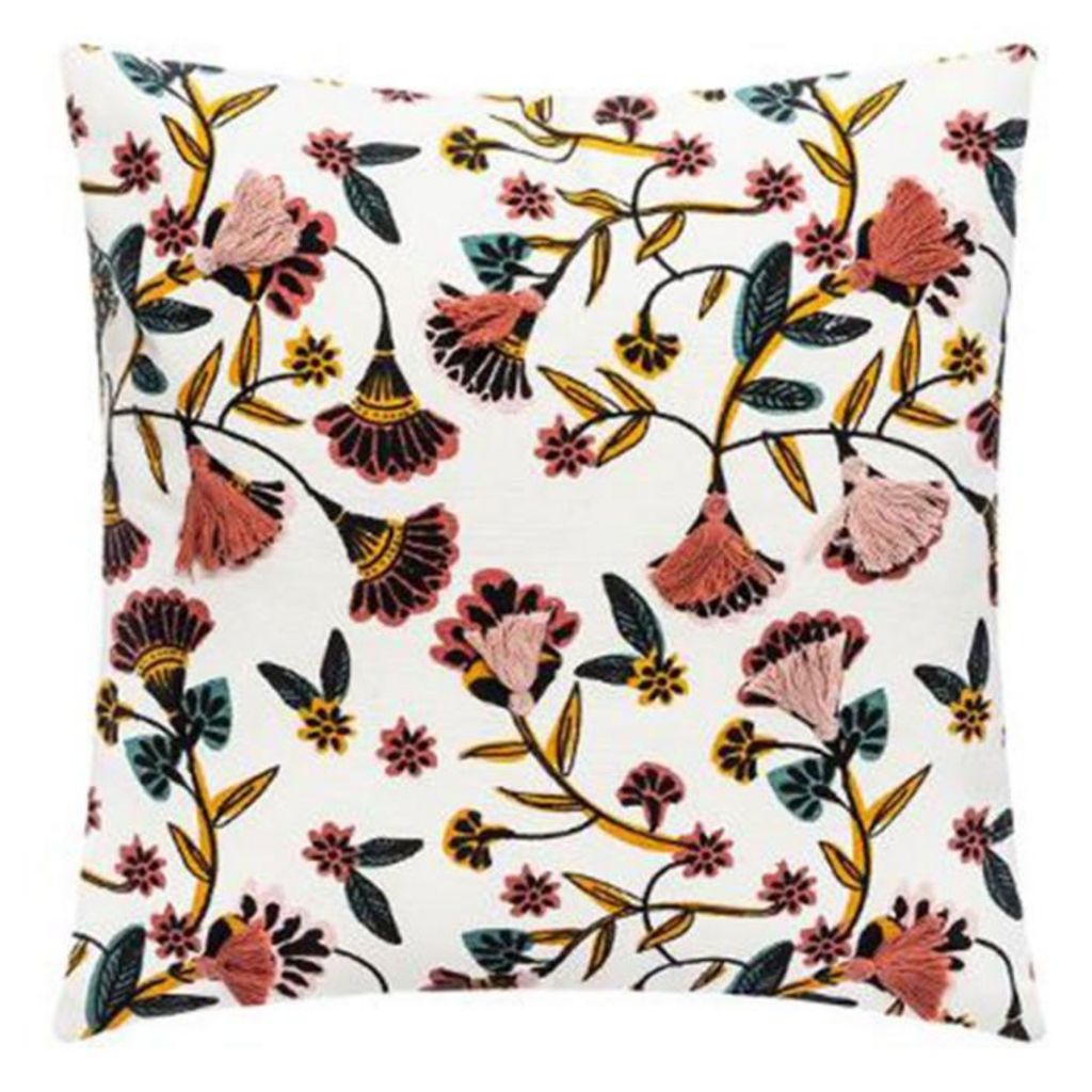 Informations Techniques : Dimensions : L. 40 x l. 40 cm Matière : Coton Spécificités : Pratique & Tendance Housse de Coussin design Forme Carrée Déhoussable à Zip Avec Pompons Motif Floral Facile d'Entretien & d'Utilisation Poids : 0,1 kg Couleur : Blanc