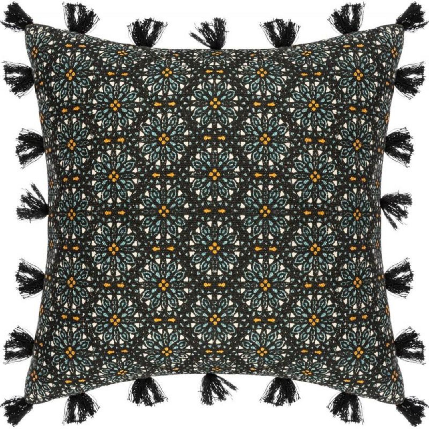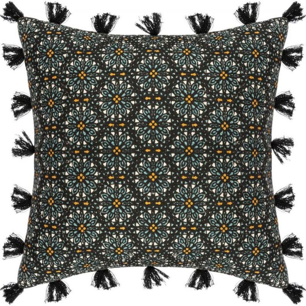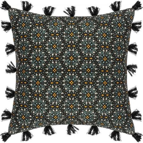 Donnez un style ethnique à votre décoration grâce à la housse de coussin Rosace Pompons 40 x 40 cm Atmosphera.
