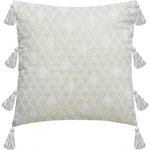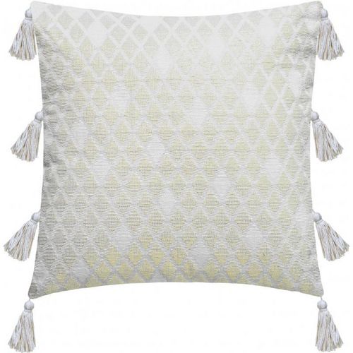 Ambiance épurée et bohème avec cette housse de coussin à losanges brillants sur un fond uni