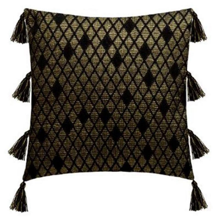 Informations Techniques : Dimensions : L. 40 x l. 40 x H. 1,5 cm Matières : Coton & Polyester Spécificités : Tendance & Pratique Housse de Coussin Forme Carrée 8 Pompons Motif Jacquard Poids : 0,14 kg Couleur : Noir & Or