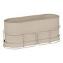 Informations Techniques : Dimensions : L. 47 x l. 18 x H. 20,5 cm Matière : Acier Spécificités : Pratique & Utile Jardinière ovale Avec anses rétractables Trou pour l'évacuation d'eau Usage extérieur À monter soi-même Poids : 1,8 kg Couleur : Beige Lin
