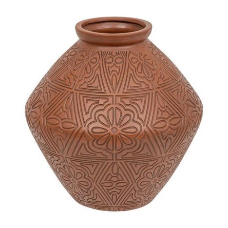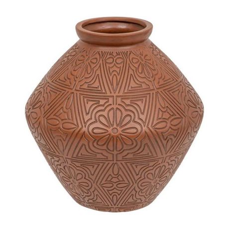 Informations Techniques : Dimensions : D. 34 x H. 35 cm Matière : Terre cuite Spécificités : Pratique & Tendance Jarre déco Motif en relief Forme ronde Poids : 4,2 kg Couleur : Terracotta