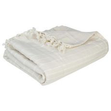 Informations Techniques : Dimensions : L. 250 x l. 230 x H. 0,1 cm Matière : Coton Spécificités : Pratique & Tendance Jeté de Lit Réversible Forme Rectangulaire À Franges Poids : 1,3 kg Couleur : Ivoire