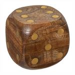 Informations Techniques : Dimensions : Boîte : L. 6 x l. 6 x H. 6 cm Déballé : L. 2,3 x l. 2,3 x H. 2,3 cm Matière : Bois (Manguier) & Laiton Spécificités : Pratique & Tendance Boîte déco à poser Design dés Poids : 0,14 kg Couleur : Marron