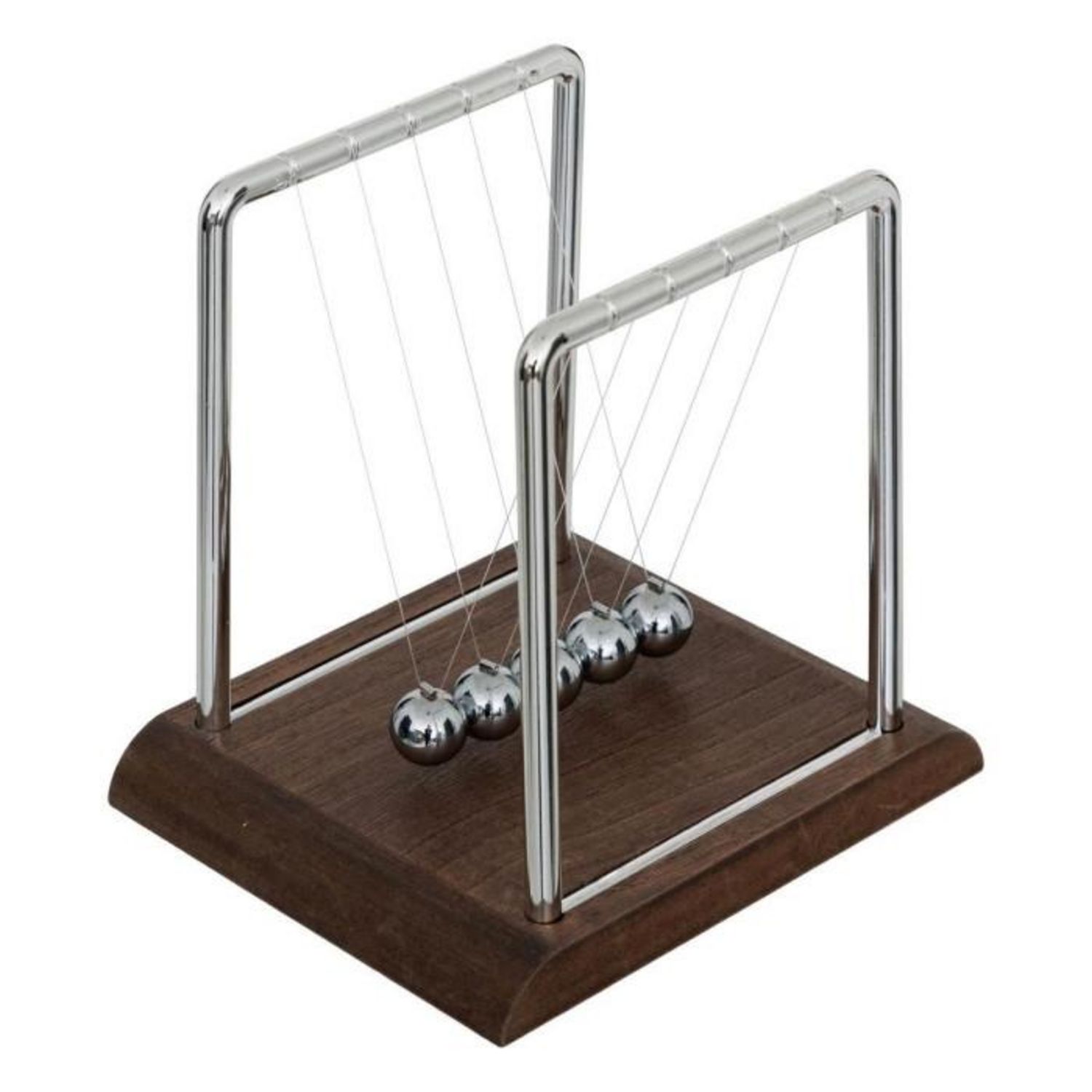 Informations Techniques : Dimensions : L. 17,5 x l. 15 x H. 18 cm Matières : MDF & Acier Spécificités : Déco & Captivant Jeu de pendule à poser Avec 5 billes métalliques À monter soi-même Poids : 0,54 kg Couleur : Marron & Argent