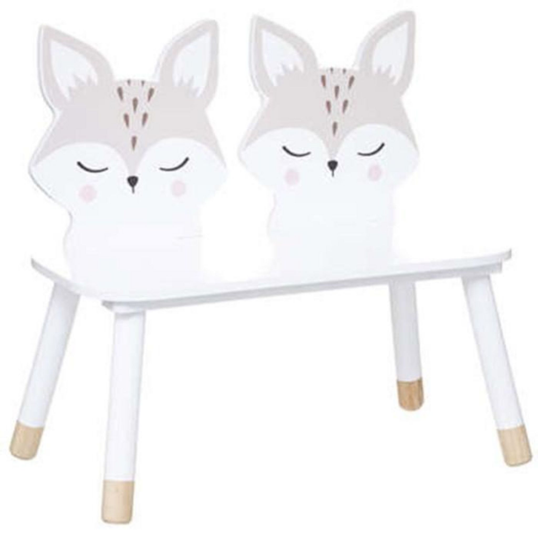 Informations Techniques : Dimensions : L. 56 x l. 28 x H. 52,5 cm Matières : MDF & Bois (Pin) Spécificités : Tendance & Pratique Banc pour Enfant Design Renard Usage Intérieur Poids Supporté : 100 kg Poids : 3,55 kg Couleur : Blanc