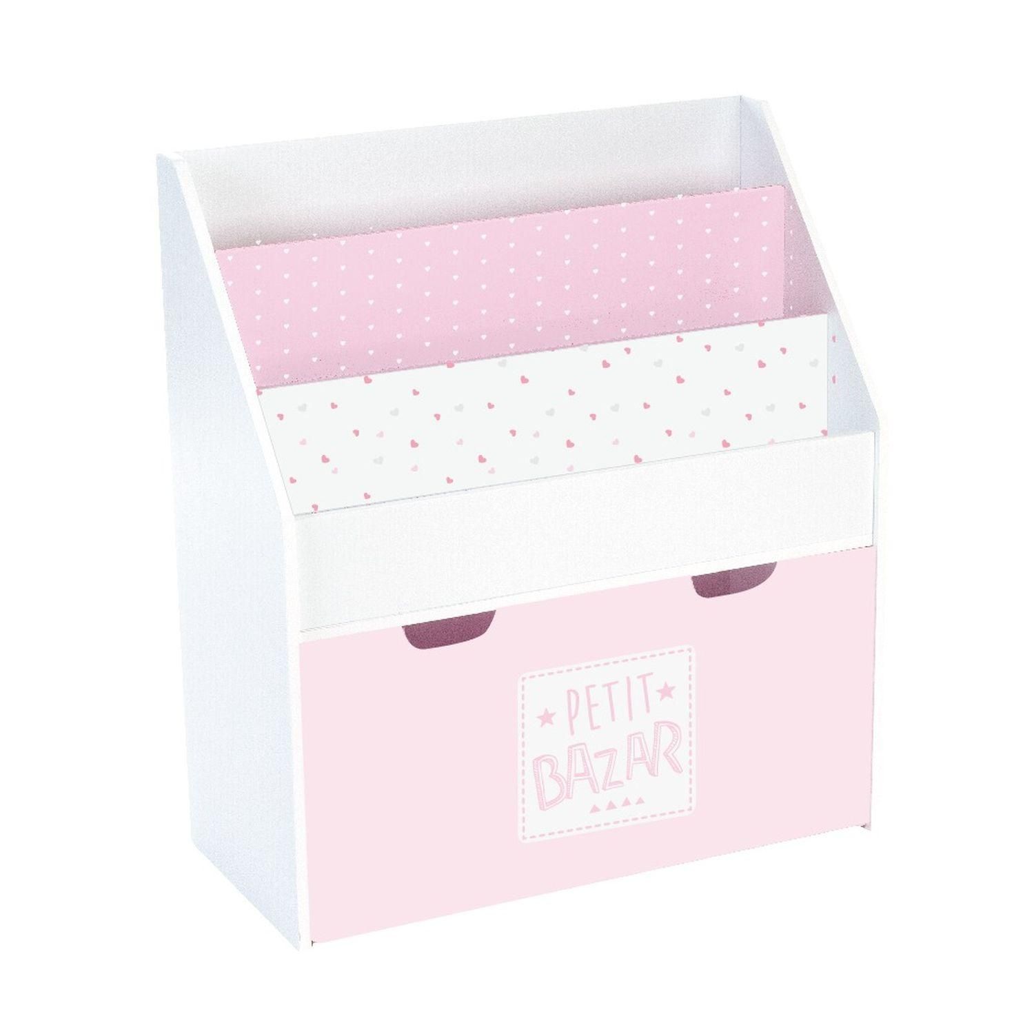 Bibliothèque avec bac de rangement sur roulettes - 62 x 70 cm - Rose