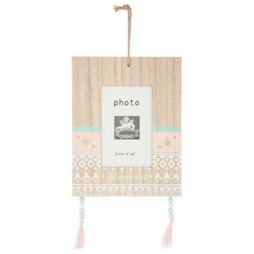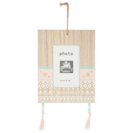 Cadre Photo A Suspendre Houppe 10x15cm Naturel