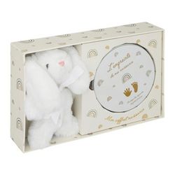 Coffret de Naissance Empreinte & Peluche Lapin 28cm Beige