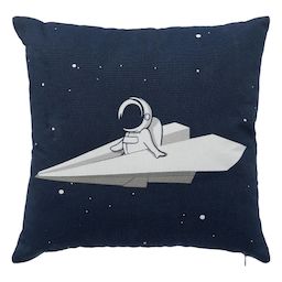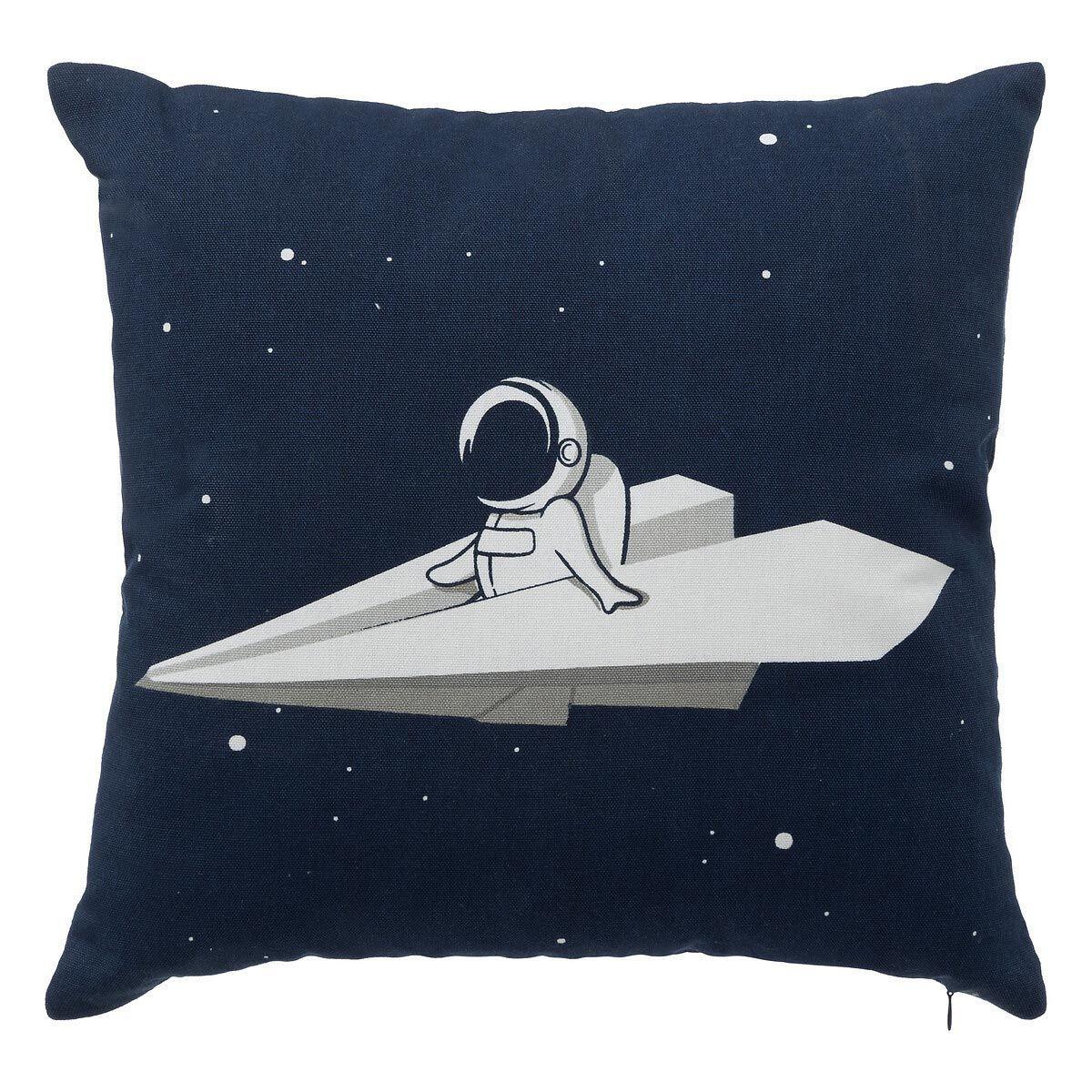 Informations Techniques : Dimensions : L. 40 x l. 40 x H. 10 cm Matières : Polyester & Coton Spécificités : Déco & Utile Coussin carré Motif astronaute Déhoussable Fermeture zippée Poids : 0,35 kg Couleur : Bleu Foncé