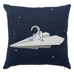 Coussin Déco Enfant Espace 40x40cm Bleu Foncé
