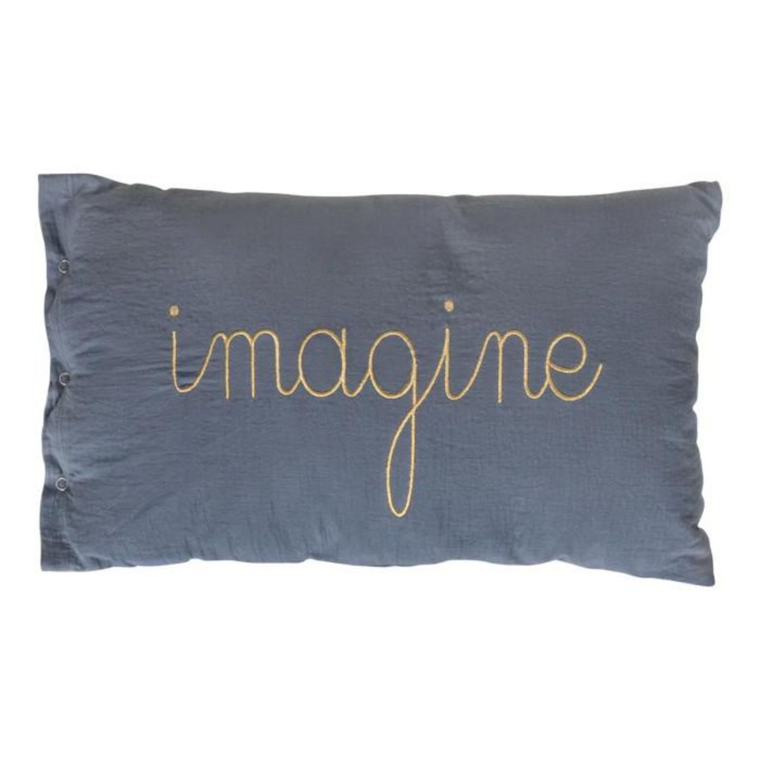 Informations Techniques : Dimensions : L. 50 x l. 30 x H. 6 cm Matières : Housse de taie : Coton (Gaze de Coton) Rembourrage : Polyester Spécificités : Design & tendance Coussin déco rectangulaire Inscription Imagine Déhoussable Entretien facile Poids : 0,36 kg Couleur : Bleu Gris