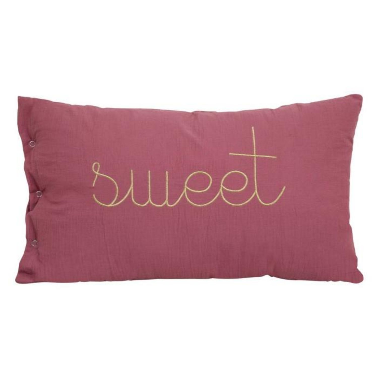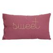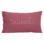 Informations Techniques : Dimensions : L. 50 x l. 30 x H. 6 cm Matières : Housse de taie : Coton (Gaze de Coton) Rembourrage : Polyester Spécificités : Design & tendance Coussin déco rectangulaire Inscription Sweet Déhoussable Entretien facile Poids : 0,36 kg Couleur : Rose Antique