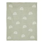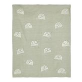Informations Techniques : Dimensions : L. 100 x l. 80 x H. 0,2 cm Matière : Acrylique (100%) Spécificités : Douce & Légère Couverture pour bébé Motif arc en ciel Accompagnera votre bébé lors de ses promenades Forme rectangulaire Poids : 0,24 kg Couleur : Vert