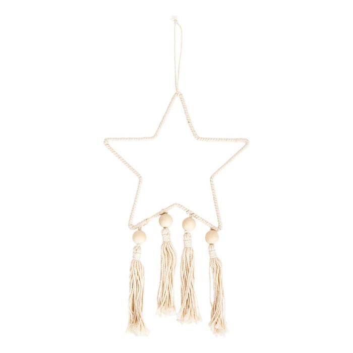 Informations Techniques : Dimensions : L. 25 x l. 1 x H. 25 cm Matières : Polyester & Acier Spécificités : Pratique & Utile Déco murale étoile À suspendre Poids : 0,1 kg Couleur : Naturel