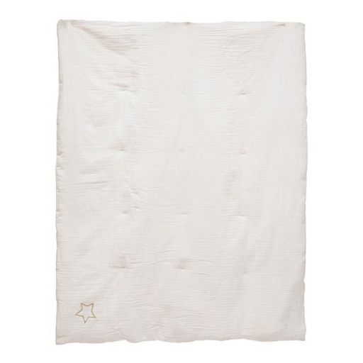 Informations Techniques : Dimensions : L. 100 x l. 140 x H. 2 cm Matière : Coton (100%) Spécificités : Doux & Tendance Édredon enfant Broderie étoile Forme rectangulaire Poids : 0,67 kg Couleur : Blanc