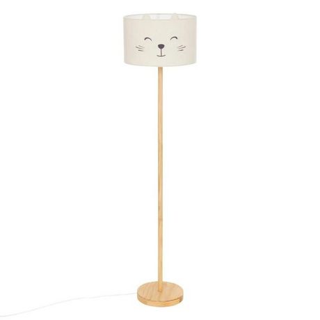 Informations Techniques : Dimensions : L. 36 x l. 36 x H. 152 cm Matières : Bois (Pin), Acier & Béton Spécificités : Déco & Unique Lampadaire enfant Design chat À monter soi-même Ampoule non incluse Douille : E27 Alimentation : Secteur IP : IP20 Poids : 2,6 kg Couleur : Blanc & Naturel