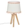 Douce et design, cette lampe à poser décorera avec douceur la chambre de votre enfant. On aime le mélange des pieds en bois et de l'abat-jour blanc aux pompons roses.FICHE TECHNIQUE- Pieds de la lampe en bois de pin.- Abat-jour en polyester.- Fonctionne avec une alimentation sur secteur.- Ampoule no