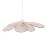 Informations Techniques : Dimensions : L. 64 x l. 18 x H. 64 cm Câble : L. 100 cm Matières : Fer & Polyester Spécificités : Tendance & Pratique Lampe Suspension Forme Ronde Design Pétale de Fleur Alimentation Secteur Douille E27 Puissance Maximale : 40W Poids : 0,6 kg Couleur : Rose