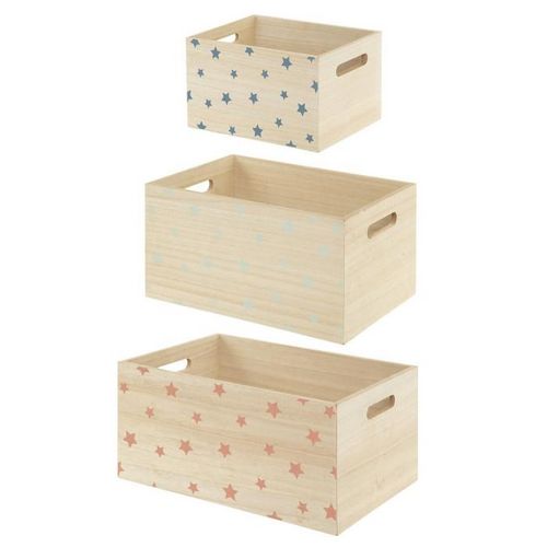 Informations Techniques : Dimensions : Taille 1 : L. 28 x l. 18 x H. 15 cm Taille 2 : L. 32 x l. 22 x H. 16,6 cm Taille 3 : L. 36 x l. 26 x H. 18 cm Matière : MDF Spécificités : Pratique & Utile Lot de 3 Cagettes de Rangement Pour Enfant Avec Poignée Imprimé Étoile 3 Tailles Différentes Poids : 3,3