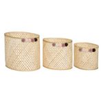 Informations Techniques : Dimensions : Taille 1 : L. 28 x l. 18 x H. 20,5 cm Taille 2 : L. 33,5 x l. 22,5 x H. 25,5 cm Taille 3 : L. 38,5 x l. 27 x H. 30 cm Matière : Bambou Spécificités : Pratique & Utile Lot de 3 Paniers de Rangement Pour Enfant Forme Ovale Avec Pompons Poids : 0,6 kg Couleur :