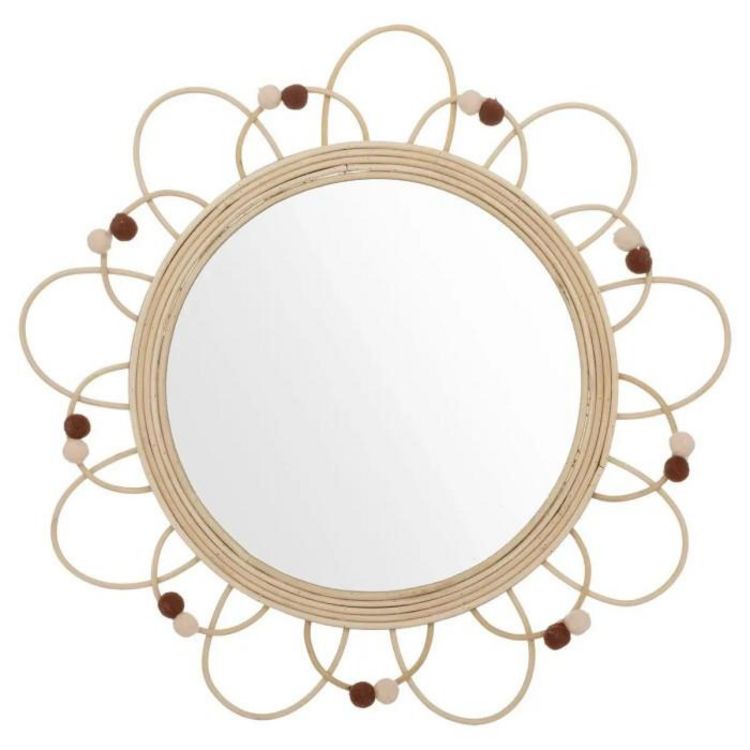 Informations Techniques : Dimensions : D. 38 x H. 1 cm Miroir : D. 22 cm Matières : Rotin & Verre Spécificités : Pratique & Utile Miroir Mural Forme Ronde Pour Enfant A Suspendre Design Fleurs Poids : 0,45 kg Couleur : Beige