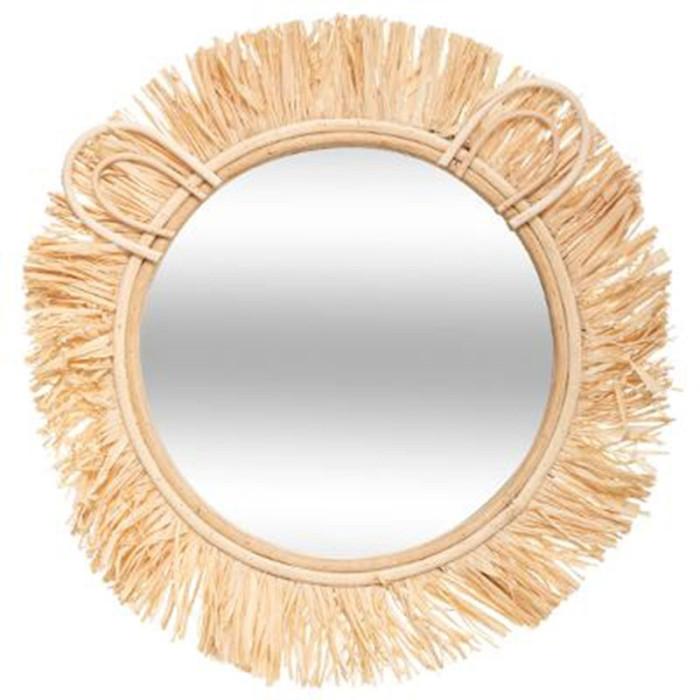 Informations Techniques : Dimensions : D. 38 x H. 1 cm Miroir : D. 22,5 cm Matières : Rotin, Raphia & Verre Spécificités : Tendance & Pratique Miroir à Suspendre Forme Ronde Poids : 0,4 kg Couleur : Naturel