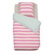 Informations Techniques : Dimensions : Housse de couette : L. 200 x l. 140 x H. 0,5 cm Taie d'oreiller : L. 65 x l. 65 cm Matière : 100% Coton (57 fils/cm2) Spécificités : Réversible & Utile Parure de lit enfant 2 pièces Imprimé à rayures Fermeture à boutons Poids : 1,65 kg Couleur : Violet
