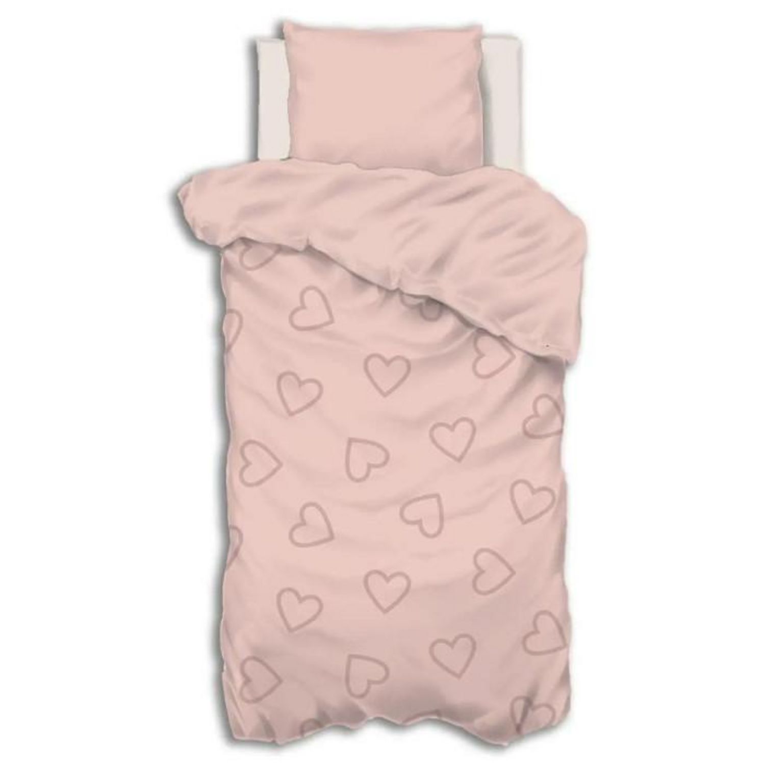 Informations Techniques : Dimensions : L. 140 x l. 0,3 x H. 200 cm Taie d'Oreiller : L. 65 x l. 65 cm Matière : Coton (57 fils/cm2) Spécificités : Pratique & Utile Parure de Lit 2 Pièces 1 Personne Forme Rectangulaire Imprimé Coeur Contient : 1 Housse de Couette 1 Taie d'Oreiller Type de Fermeture