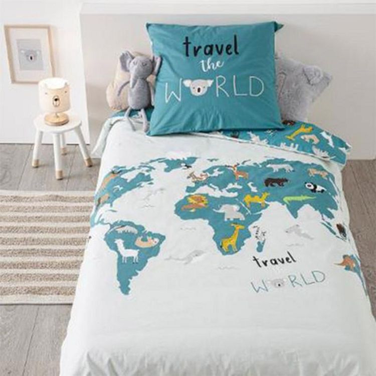 Parure de Lit 2 Pièces Monde 140x200cm Bleu