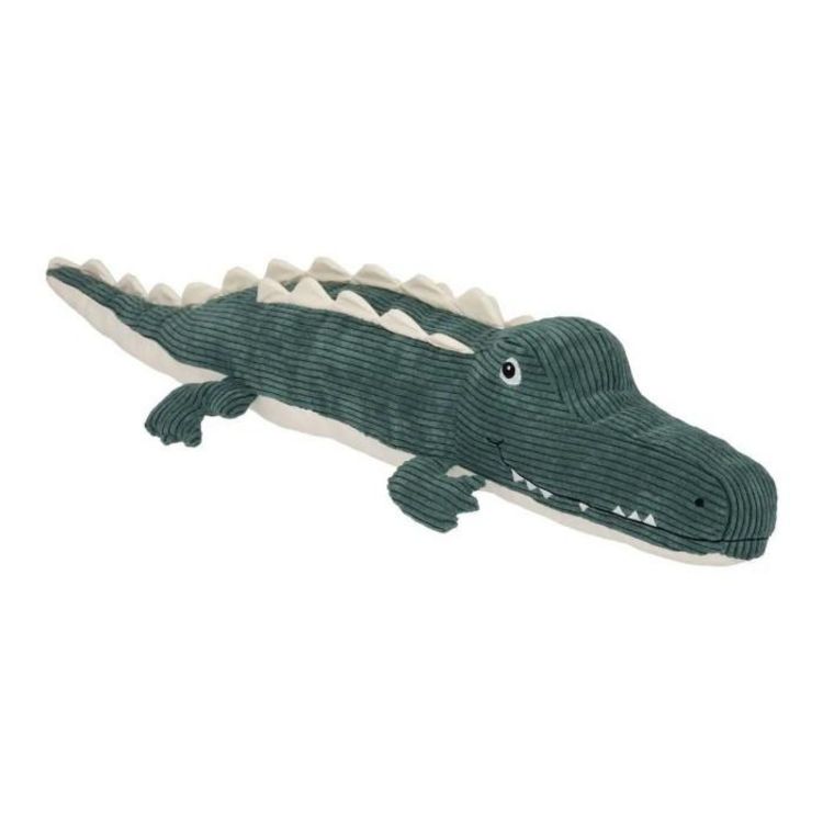 Informations Techniques : Dimensions : L. 80 x l. 16 x H. 23 cm Matières : Polyester & Coton Spécificités : Pratique & Utile Peluche pour Enfant Design Crocodile Poids : 0,305 kg Couleur : Vert