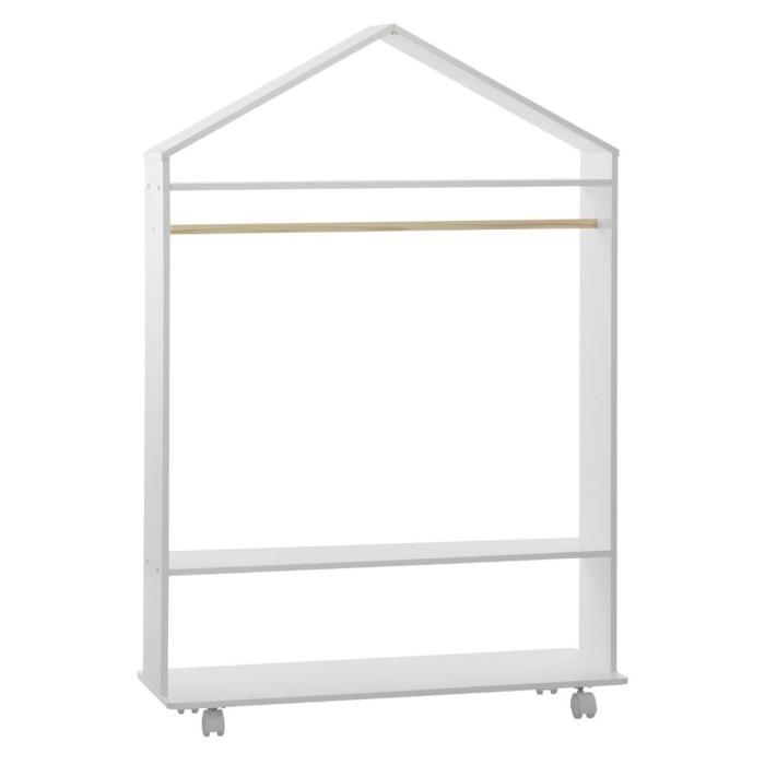 Informations Techniques : Dimensions : L. 80,5 x l. 36 x H. 120 cm Matière : MDF Spécificités : Tendance & Pratique Penderie à roulettes pour enfant Style scandinave Livré non monté Facile d'utilisation & d'entretien Poids : 9,5 kg Couleur : Blanc